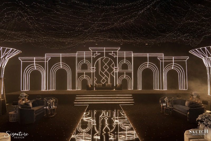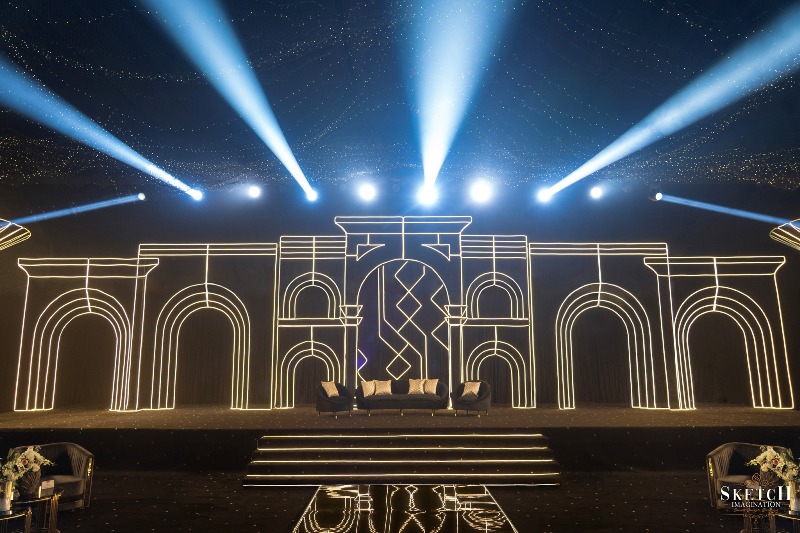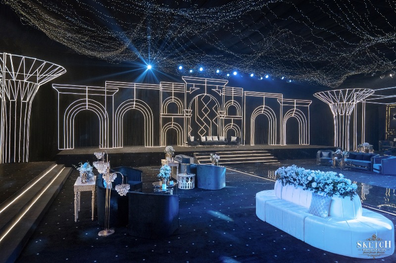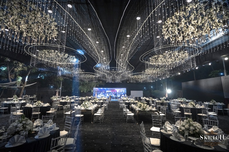 Reception Ceremony of “JOANNA & SHADAB”. A visual symphony inspired by Van Gogh, where art embraced the cosmos. Swirling lights, crystal installations, and celestial hues danced across the sky like living brushstrokes. Sketch Imagination transformed the venue into a starry masterpiece and a realm of color, motion, and emotion. A glitzy, star-kissed evening where creativity and romance aligned in perfect harmony.