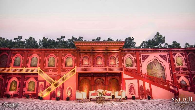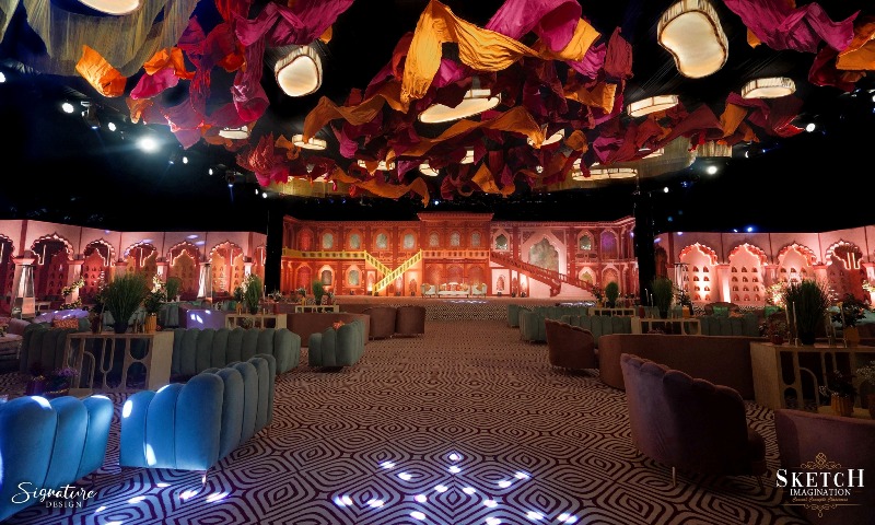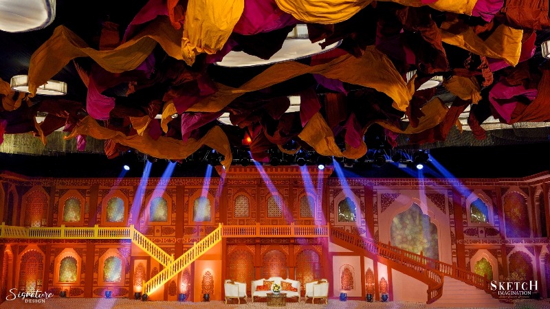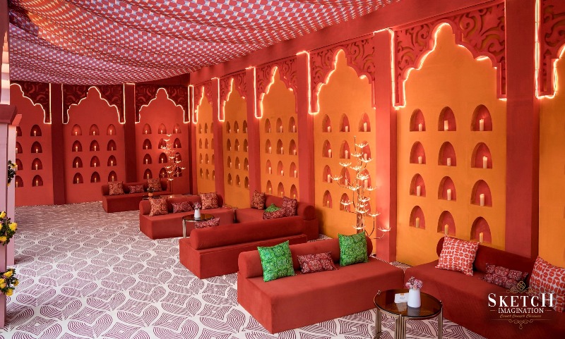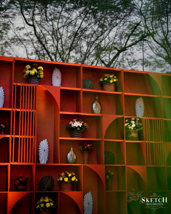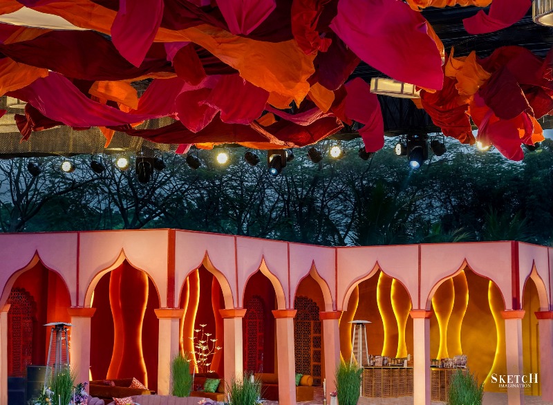 Holud unfolded as a seamless blend of heritage and modern artistry, where timeless rituals embraced contemporary design. A bespoke art installation took form — sculpted in rich tones of saffron, vermilion, and berry — rising gracefully to set the sky ablaze with warmth and movement. Every element was thoughtfully curated, transforming tradition into an immersive visual story. This one-of-a-kind décor experience reflected meticulous craftsmanship, refined imagination, and a celebration designed to inspire.